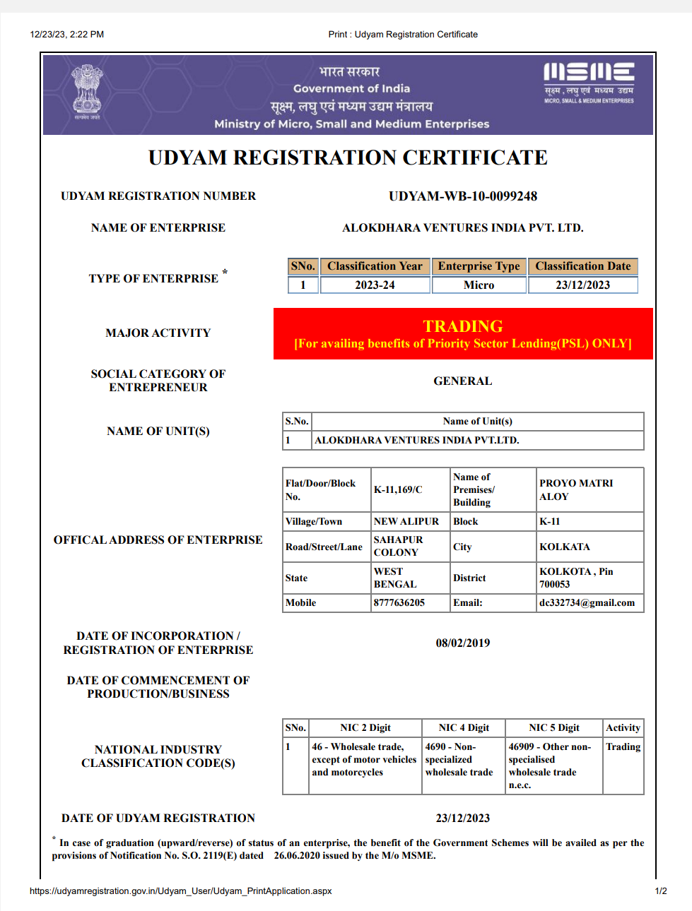 M: 9830304787 / 8777636205 | Email: alokdharaventures@gmail.com