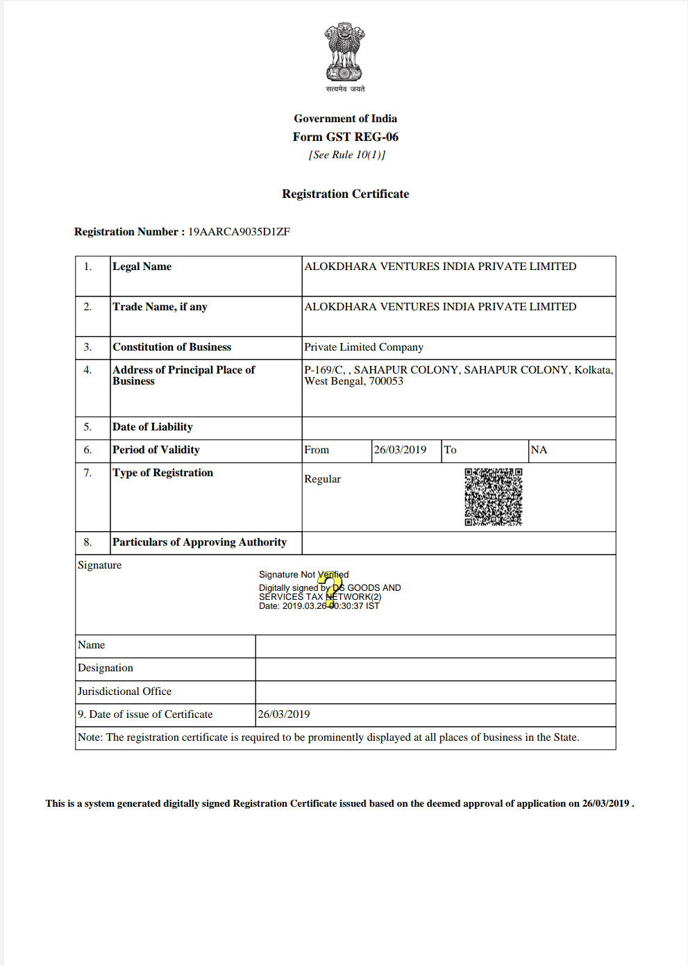 Corporate Office: K-11, Sahapur Colony (West), Plot No, 169/C P.S-New Alipur, Kolkata 700053